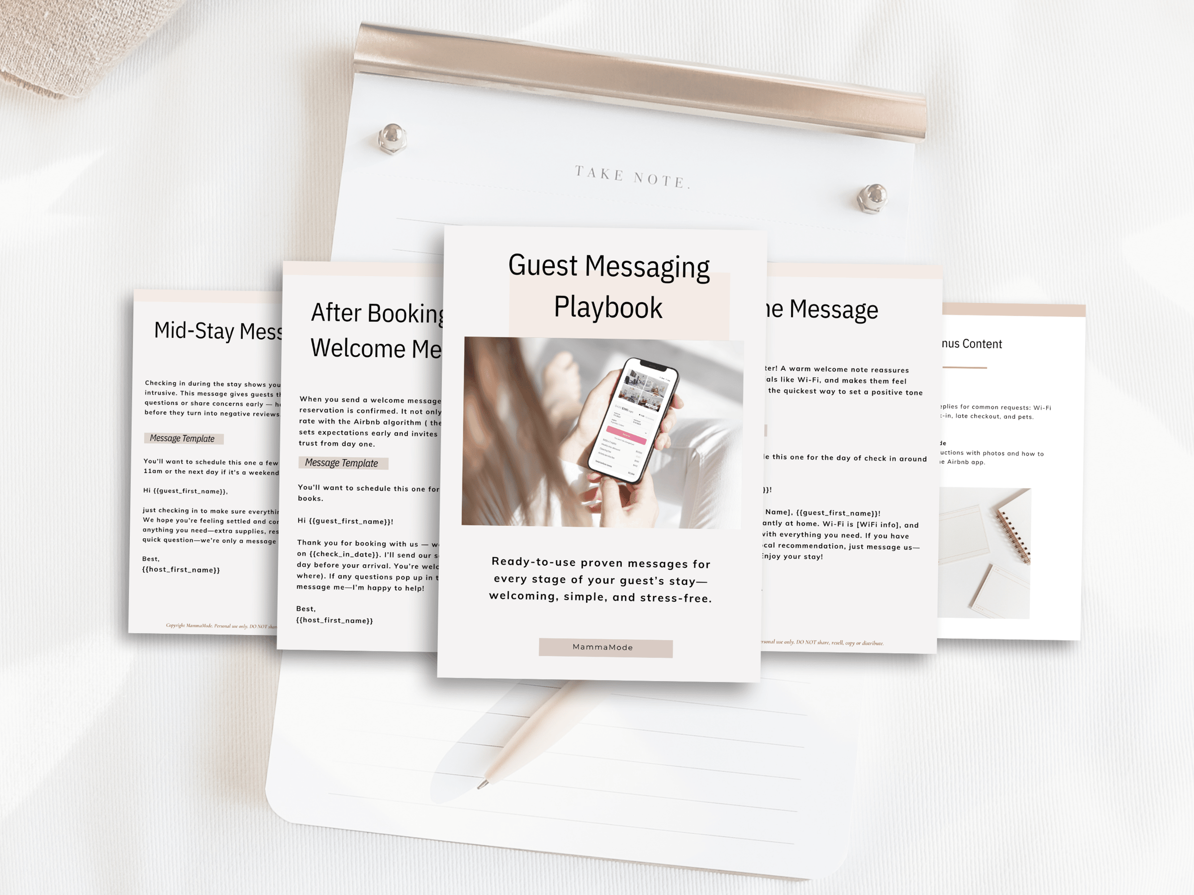 The Airbnb Guest Messaging Playbook gives you ready-to-use scripts for every guest interaction. Save time, sound professional, and boost five-star reviews with templates created by a Superhost and Airbnb Ambassador who’s helped 10,800+ hosts succeed.